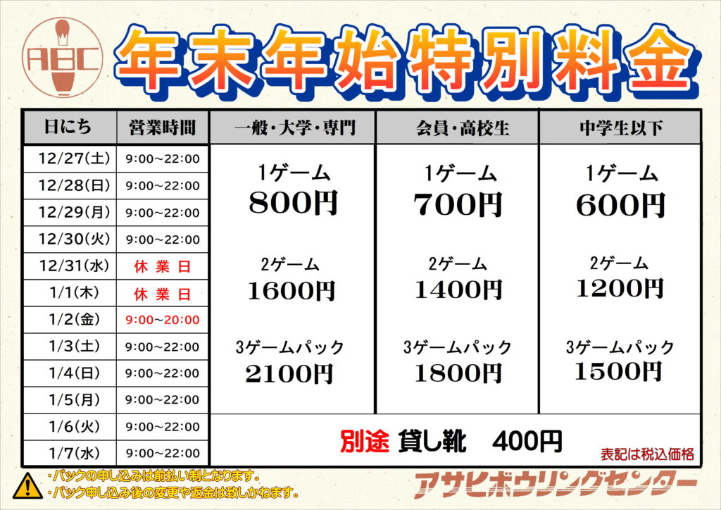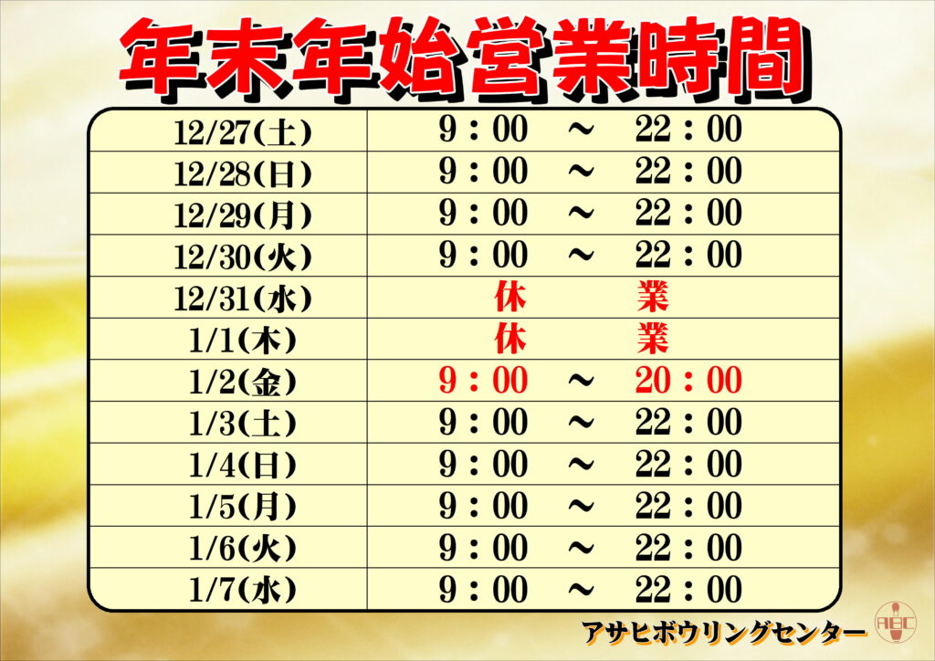 アサヒボーリングセンターからのお知らせ