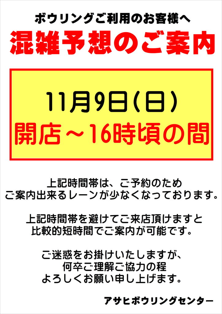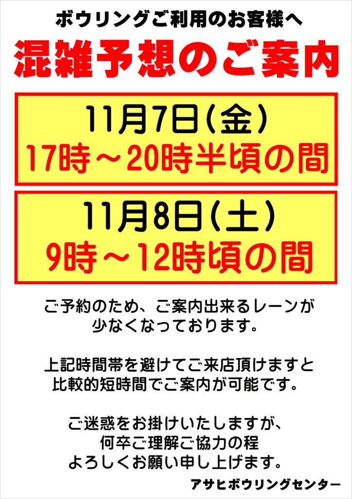 11月7日(金)、8日(土)、9日(日)混雑予想のお知らせ