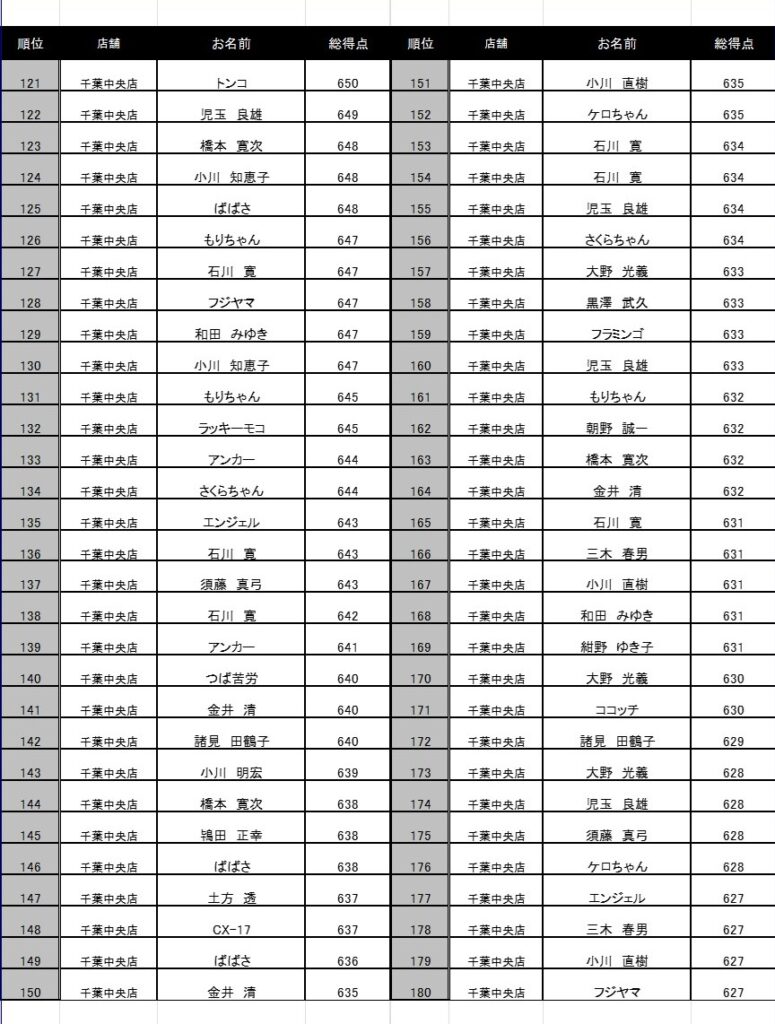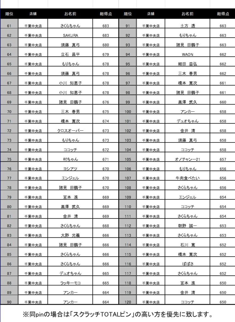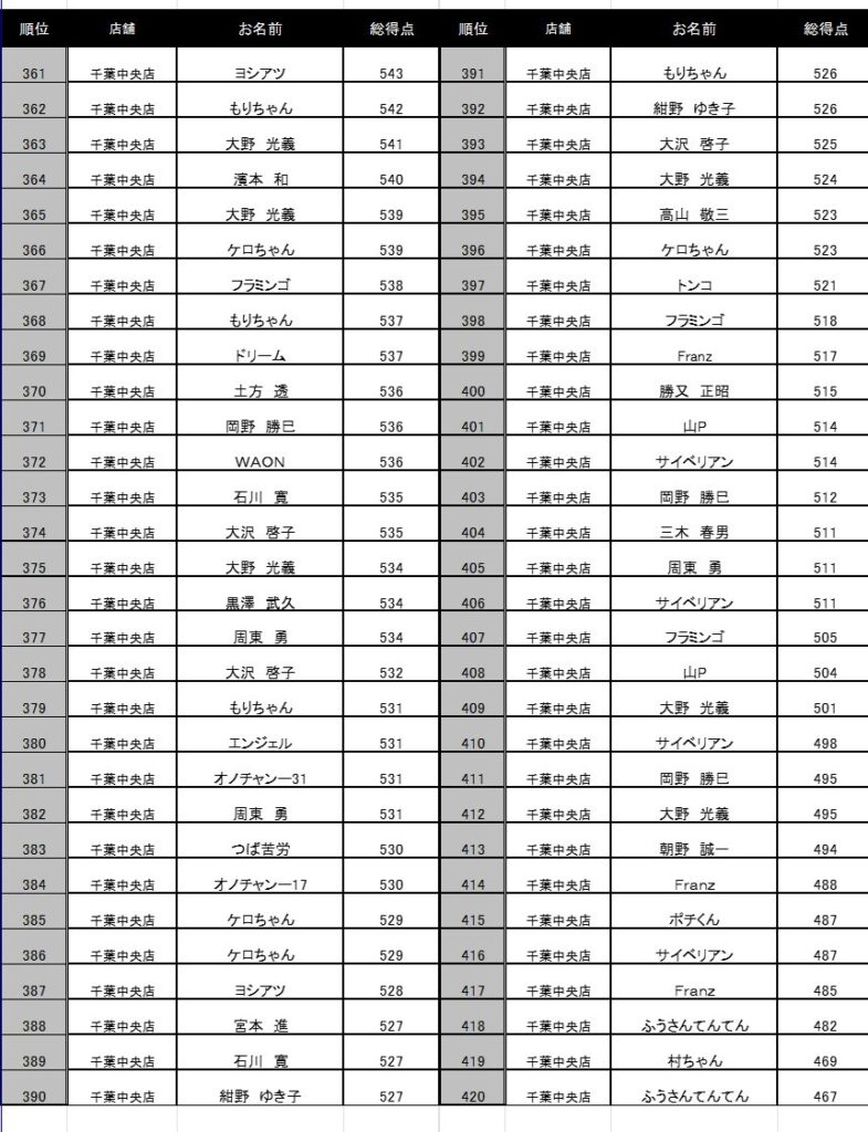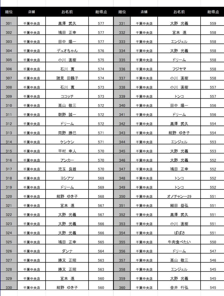 300円フリータイム成績